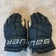 Used men’s black Bauer gloves. Two small rips in glove.