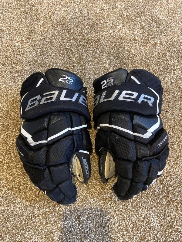 The Bauer Supreme 2S Pro hockey gloves combine protection and mobility for serious players. With Triple Shox and Poron XRD foam, they provide excellent impact protection. The three-piece index and thumb construction, along with a flex cuff, ensures great dexterity and stickhandling for quick plays.