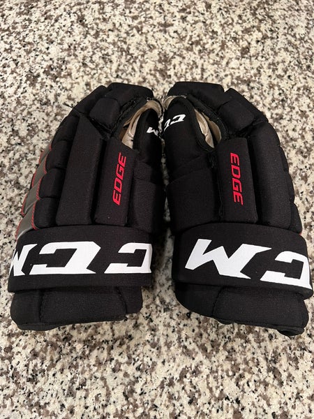 CCM Edge hockey gloves offer a reliable combination of protection and comfort for hockey players of all levels. Known for their durability and performance, these gloves feature a robust construction with impact-resistant materials to safeguard your hands from injury. The ergonomic design and breathable fabrics ensure a comfortable fit and minimize sweat buildup, allowing you to focus on your game without distraction.