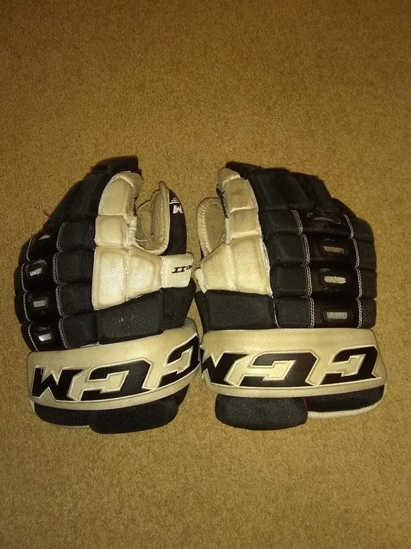 Black and White color scheme. Used, but in decent condition. (Left is nearly perfect). Right palm is torn along the thumb and the side of the pinky finger. Even so, with normal use, you'll get through the season. Padding on both the inside and outside are in excellent condition for both gloves. Make me a reasonable offer...