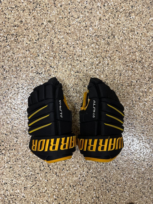 Youth Warrior Alpha QX4 hockey gloves, 10”, black/gold, Lightly Used