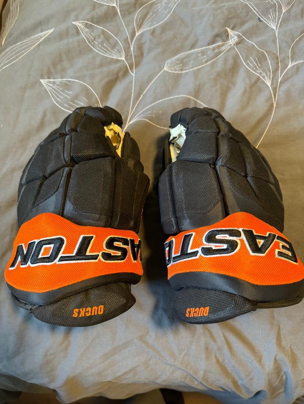 NWOT - Easton Stealth Pro Stock Hockey Gloves - Anaheim Ducks Team Stock 14”