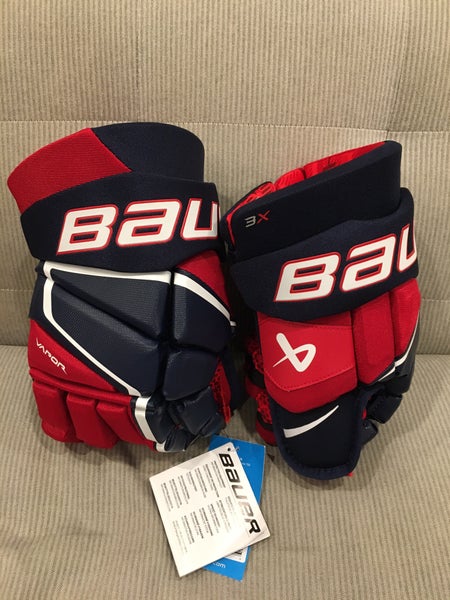 New! Size 14” Bauer Vapor 3X Hockey Gloves Blue Red