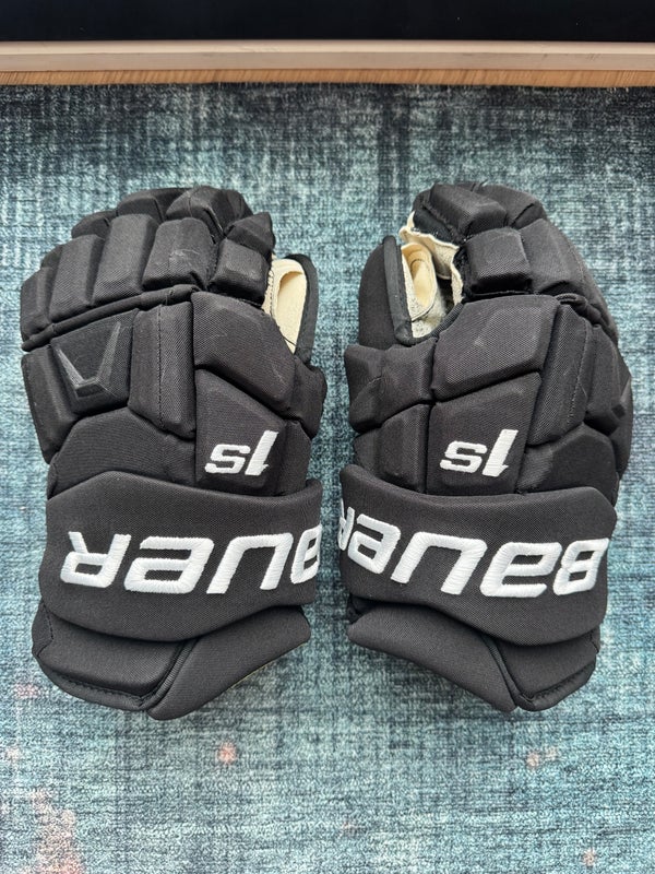 NHL Penguins Black Bauer Supreme 1S PRO STOCK Ice HOCKEY GLOVES 14 Kunitz