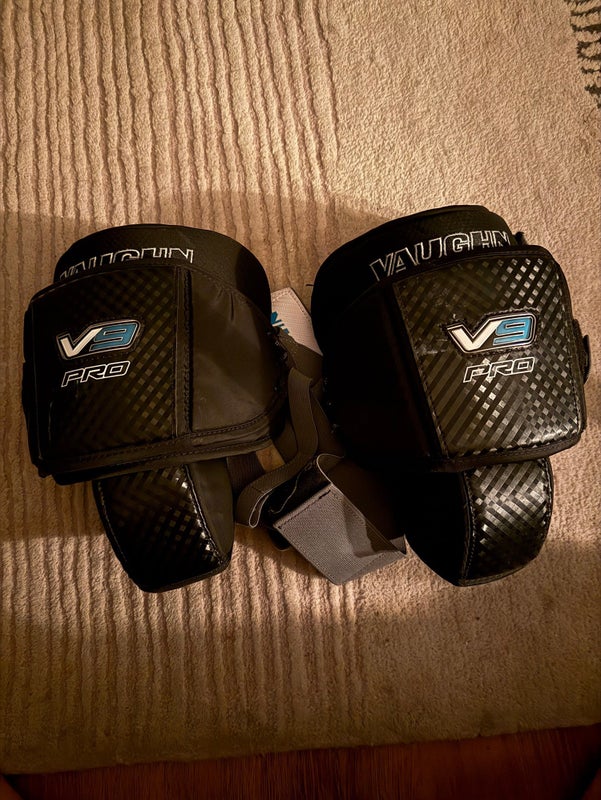 Vaughn V9 Pro Hockey Goalie Knee Pads Senior w/ Garter Belt