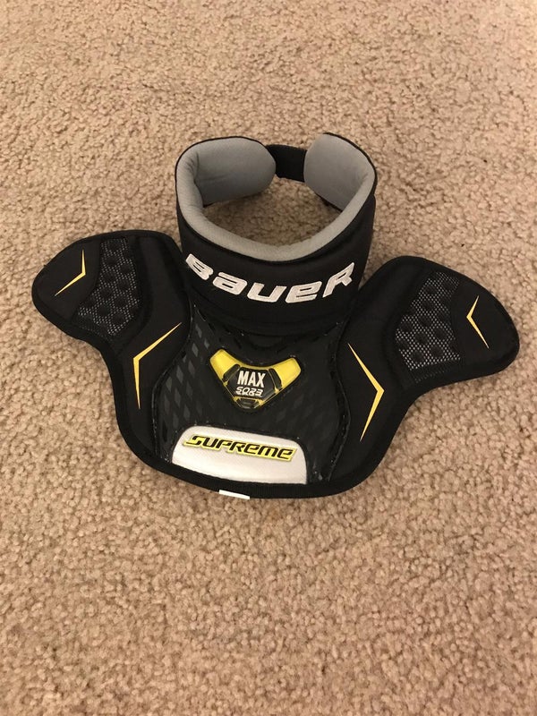 Black Bauer Neck Protector. Size Small/Medium. Too small for my thick neck. Never used by me. Used for 10 games before me. My loss your gain. Open to offers. This will fit necks 10-14 inches.