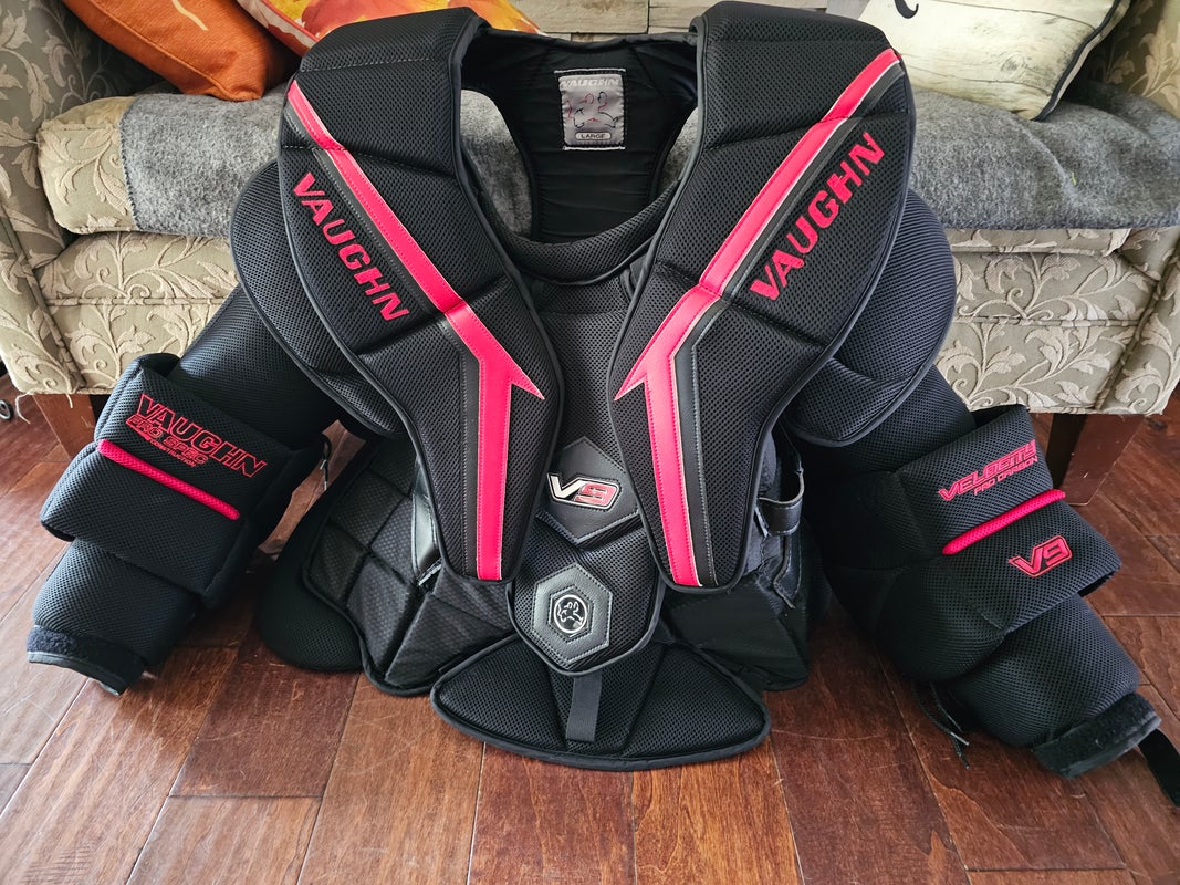 Used Large Vaughn V9 Pro Carbon Goalie Chest Protector Pro Stock