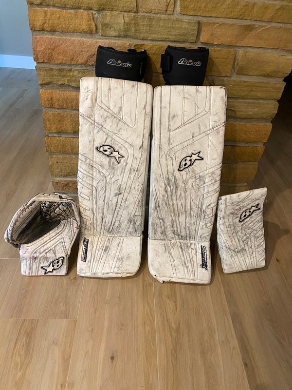 Bauer Custom Supreme Shadow Digiprint Goalie Set with brians iconik glove. Size small (33”) pads.
