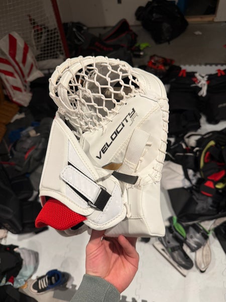 Never used! My son wanted True set after I purchased these, in Bauer now… if you know goalie then you get it. I re-lace the pocket to make it awesome, partial break in process, Vaughn gloves take time to break in but are sweet when the you get it. Gloves are great quality, Vaughn does Junior gear very well.