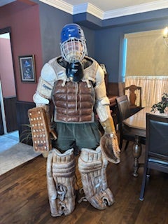 Full set of Goalie pads, blocker, 2 catching gloves, chest protector.