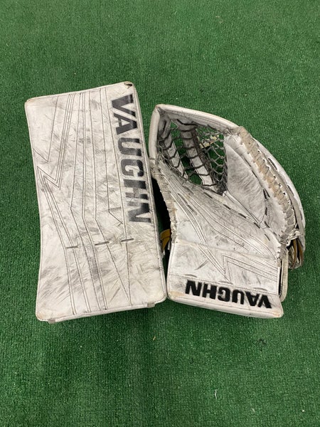 White Senior Vaughn V9 Pro Goalie Gloves & Blockers Regular (Used)