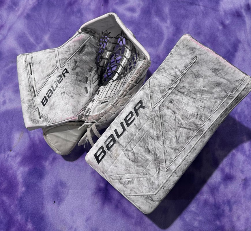 White Senior Bauer M5 Pro Goalie Gloves & Blockers Regular (Used)