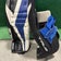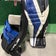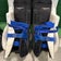 White Black & Blue Intermediate True Catalyst 7X3 Goalie Leg Pads (Used) | 31"+2"