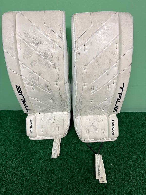 White Junior True HZRDUS Goalie Leg Pads (Used) | 26"+2"