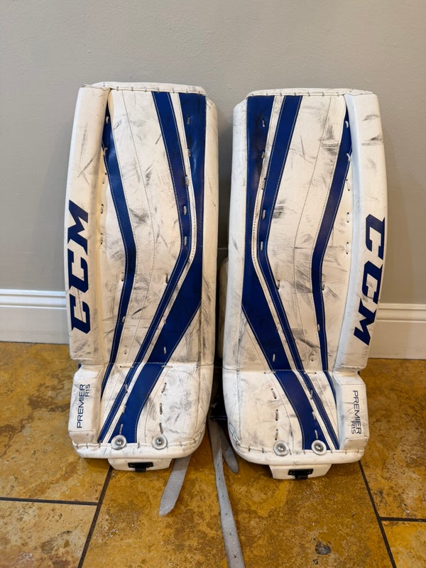 The CCM Premier R1.5 goalie pads feature a softer, shallower boot and a looser calf strap that promote quick, responsive movements and ease of transitioning in and out of the butterfly. A unique soft foam knee wrap, exclusive to junior and youth models, assists in closing the five-hole, a common challenge for young goalies. The pre-curved single break core and outer flex maximize coverage, while the 60-degree boot angle and PE foam knee raiser help direct rebounds away from the net.