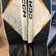 White with Boston bruin colors. Used for one season but everything works like it should. Kiddo outgrew them.