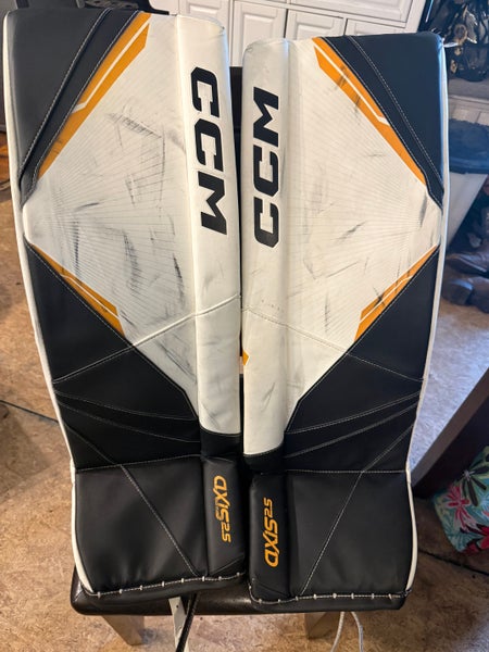 The CCM Axis A2.5 junior goalie leg pads offer young goalies enhanced performance and a more customized fit. The pre-molded s-shape core and strategically placed breaks in the vertical roll provide superior flexibility and five-hole coverage, especially for goalies with narrower butterflies. The new Dynamic Response System knee stack increases stability and control, while the Special Edition single break option further enhances the pad's natural flex for optimal performance.