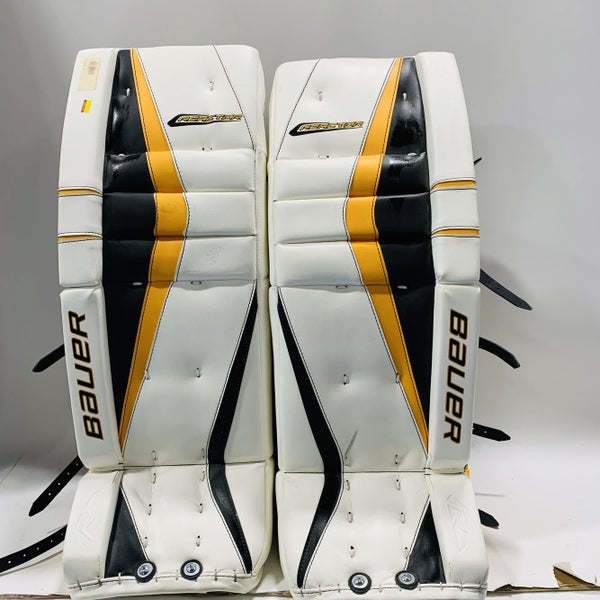 White, Black & Gold Intermediate 30+" Bauer Reactor 9000 Goalie Leg Pads
