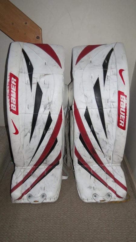 White Used Senior 37" Bauer one75 Goalie Leg Pads