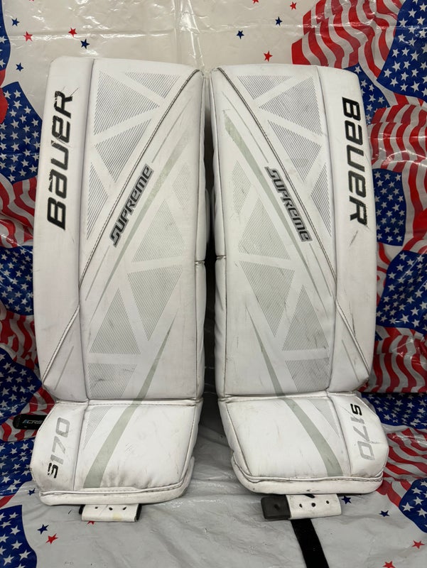 Used Bauer Supreme S170 White Junior Small Hockey Goalie Leg Pads- 205263