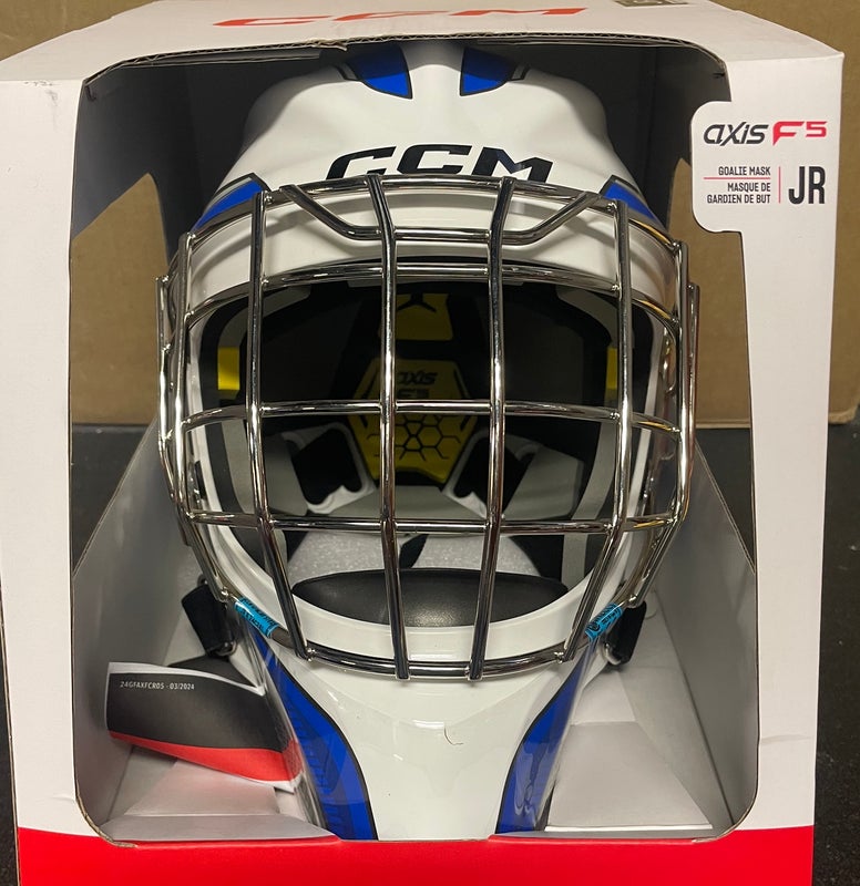 CCM Axis F5 Goalie Mask White/Blue Jr