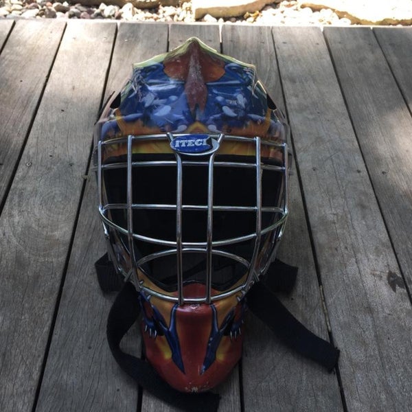Excellent condition. Junior goalie mask, size 6 1/2"-7 1/8". A few cosmetic scrapes from light use.