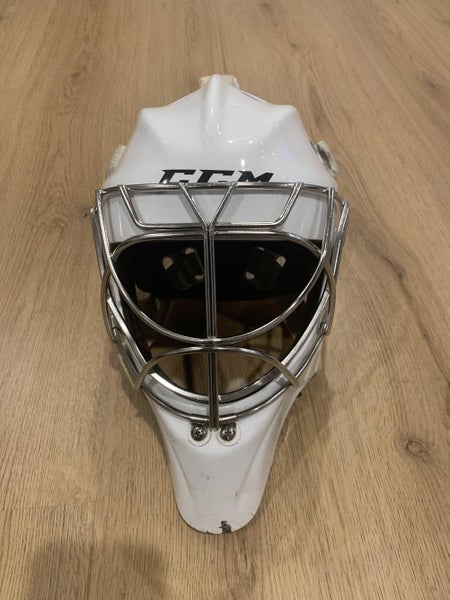 White Used Senior CCM Pro Goalie Mask Pro Stock Medium