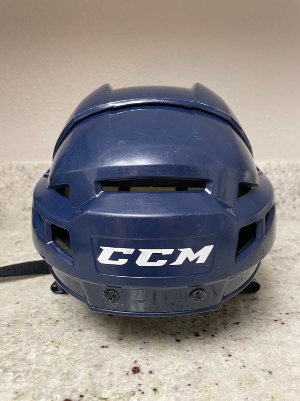 Pro Stock CCM V08 NHL Hockey Helmet Size Large Navy blue Washington capitals This helmet has been lightly used with a cage. So you will see very small marks between the forehead screws and on the left side temple where the cage hit the helmet. Foam is very clean. Used 3 times.