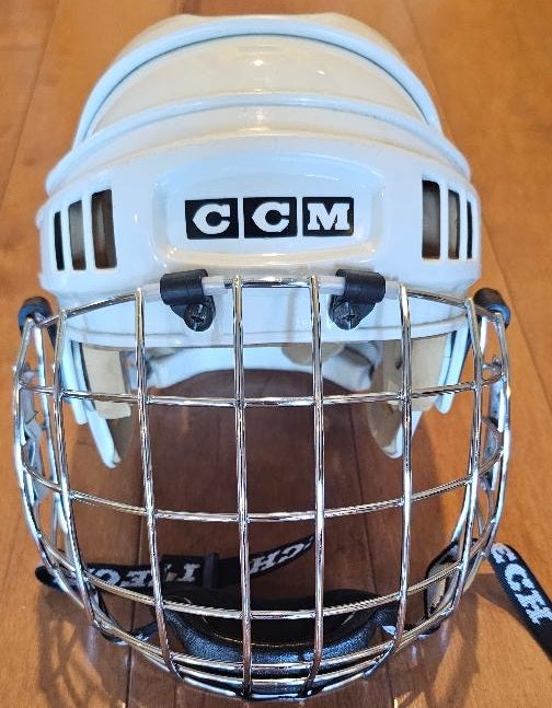 CCM Senior Medium Hockey Helmet White + Itech RBE VII Stainless Cage CSA & HECC Certified