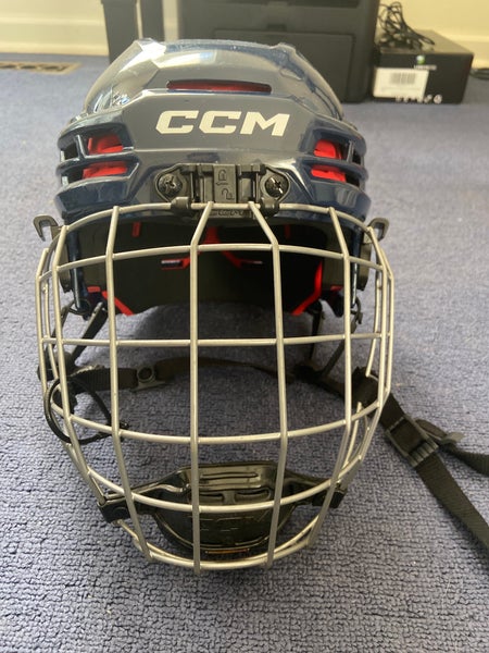 Good condition. Used while the player was 7-8 years old. I can not find an exact size on the helmet.