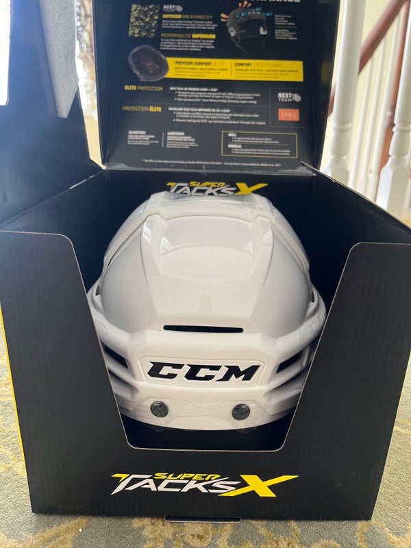 CCM PRO STOCK SUPER TACKS X HELMET WHITE MEDIUM