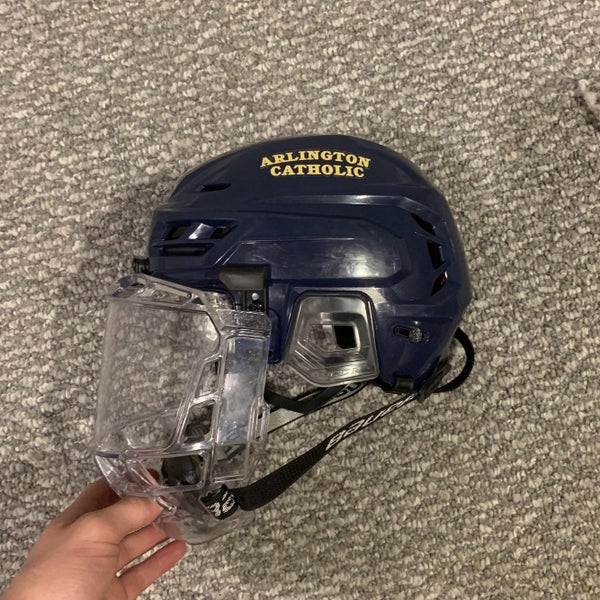 Navy blue CCM Tacks 710 great helmet. This helmet is in great condition only used for a month in high school season. I am willing to trade for a Navy Blue Bauer re-act. I will also negotiate. (Fish bowl included)