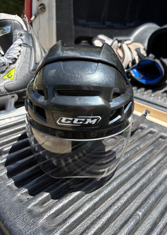 The CCM Vector Helmet is designed for hockey players seeking reliable protection with a lightweight, comfortable fit.