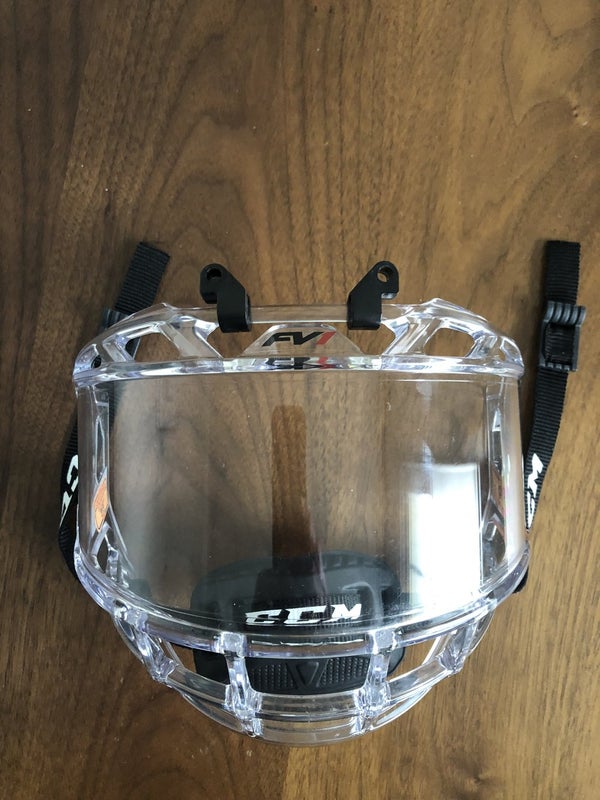 This Junior CCM FV1 Face Shield was purchased 05/20 and only used 2-3 times before we went back to using the cage. Excellent condition - no scratches or marks.