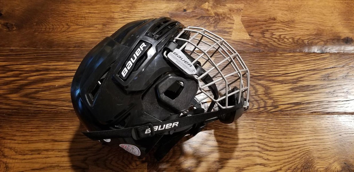 bauer ims 5.0 medium helmet still in good condition no cracks or damage comes with medium cage and is adjustable by snaps on side also has chin strap message me with any questions or make an offer.