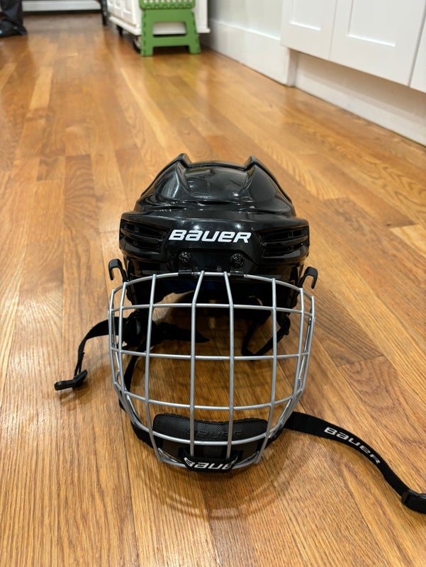 Helmet is in good condition with some marks on it. It’s adjustable youth size and my son (who has a fairly large head) grew out of it as a 10 year old. Used for one season of Learn to Play and half a season of travel hockey.