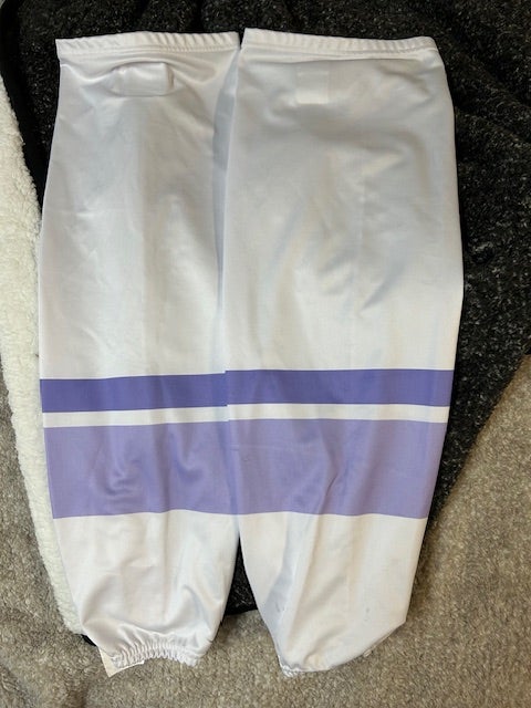 White with Purple Hockey Fights Cancer Night Hockey Socks, Pro Stock, L