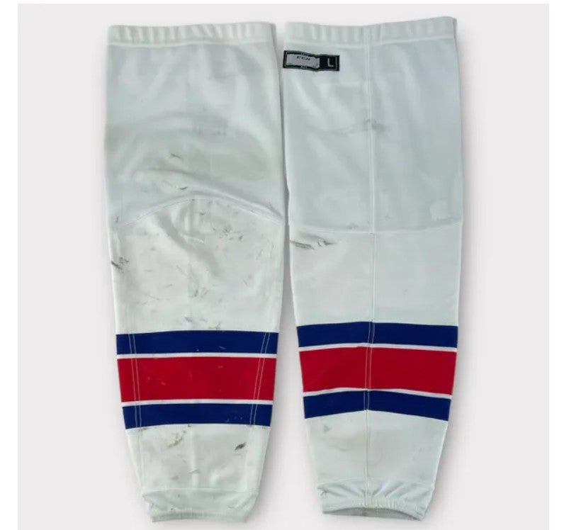 Pro Stock Used CCM Large Away Rochester Americans White Hockey Socks