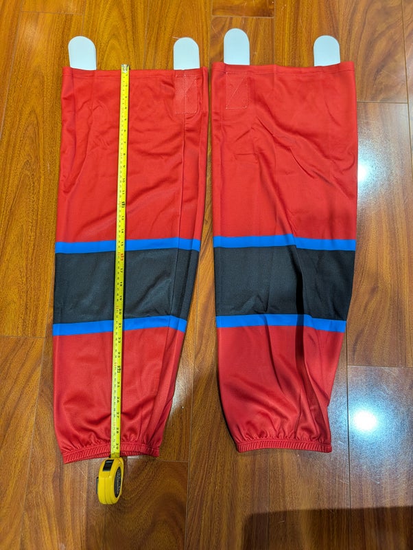 Red Senior XL Socks (New) - Red with Black and Royal Blue Stripes - 30in