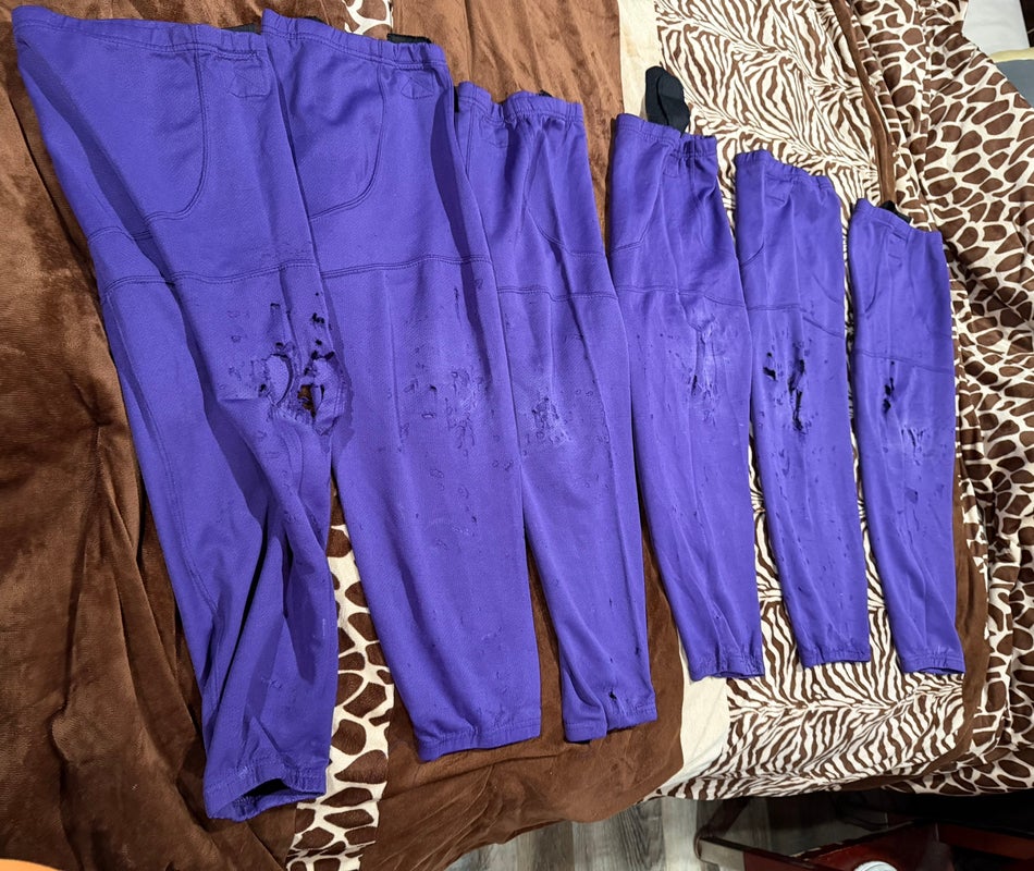 3 PAIRS OF USED ELMIRIA MAMMOTH PURPLE PACTICE SOCKS SIZE 32