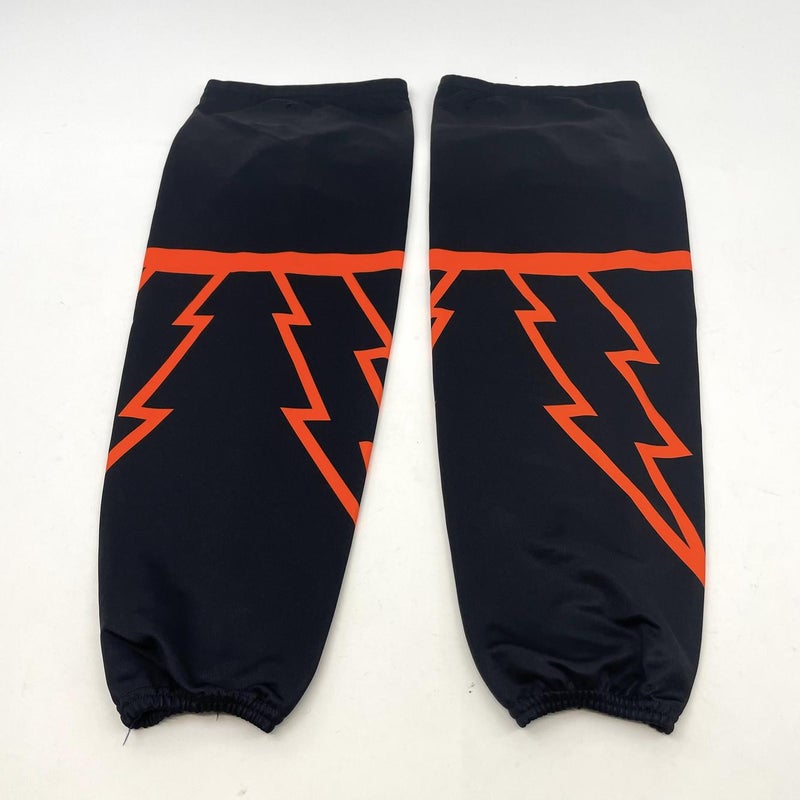 Like New | Black with Orange Lightning Strike Hockey Socks - 32"