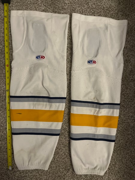 Knit Hockey Socks Blue with Yellow/White Stripe Intermediate Size 25" (Used)