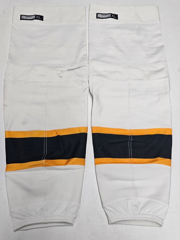 REEBOK EDGE CUSTOM HOCKEY SOCKS BOSTON BRUINS WHITE PRO STOCK NHL X-LARGE XL USED(10717)