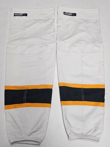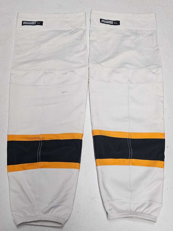 REEBOK EDGE CUSTOM HOCKEY SOCKS BOSTON BRUINS WHITE PRO STOCK NHL X-LARGE+ XL+ USED(10718)
