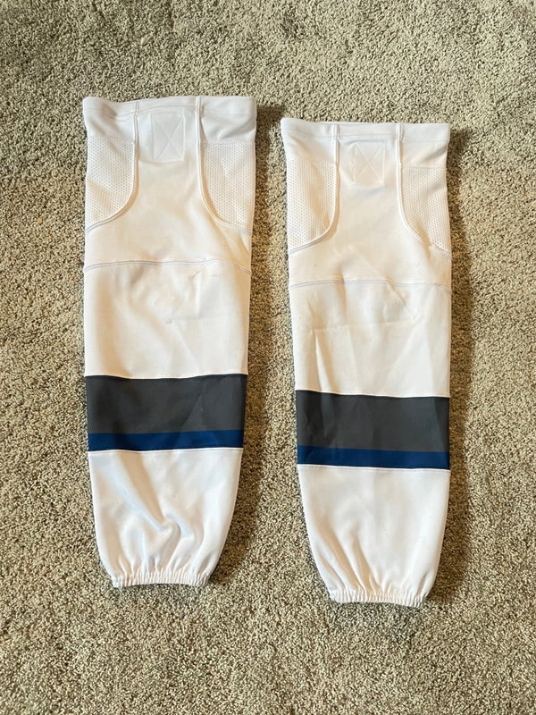Intermediate 28” Hockey Socks—White/Gray/Blue