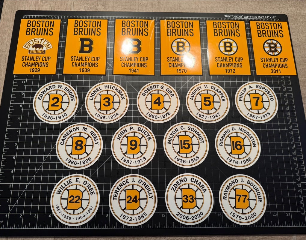 Boston Bruins Stanley Cup & Retired Number Decal Banners Set CHARA