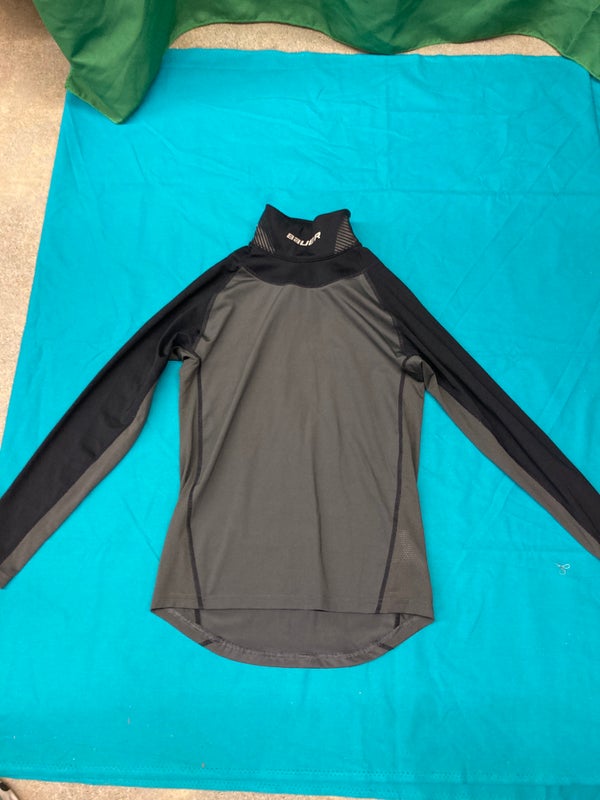 Black Used Bauer Base Layer Shirt W/ Kevlar Neck Guard Youth Medium