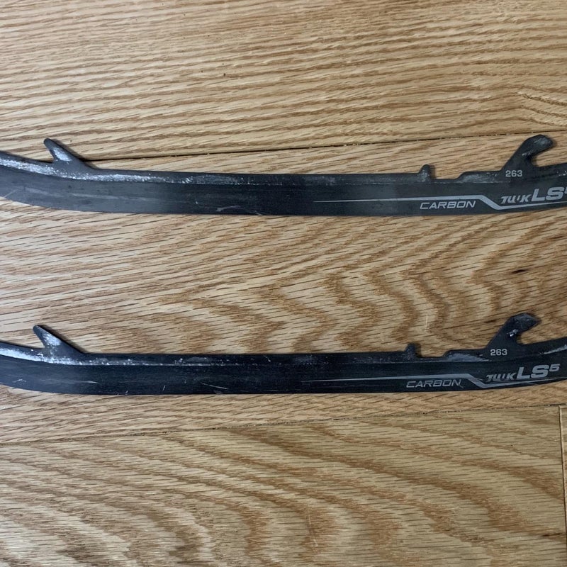 Bauer LS5 steel. They are in good condition and could likely be used for about a season before needing to be replaced, depending largely on how often you get skates sharped. I used these for about 30 skates and they could even serve as a great backup pair.