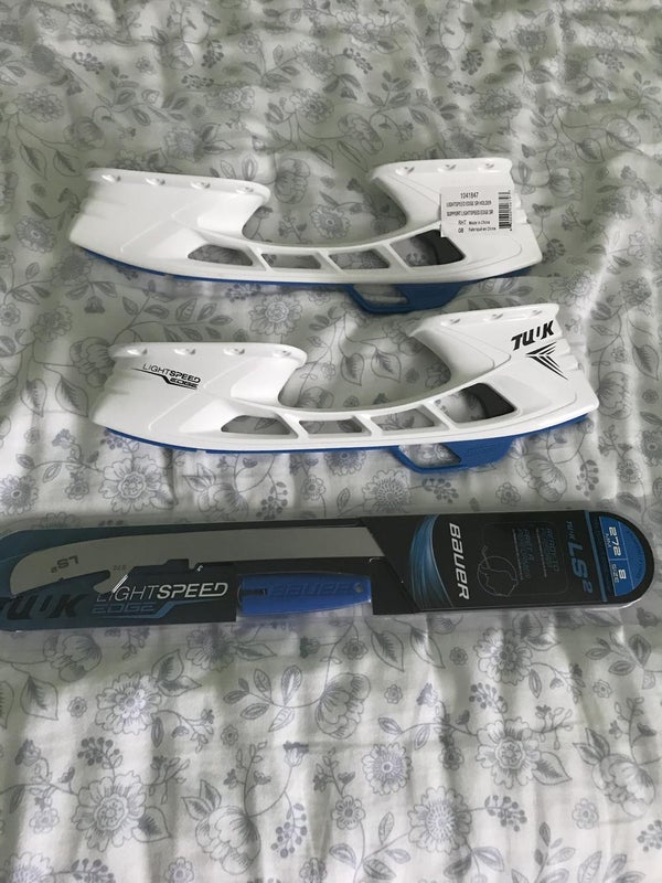 Bauer 272 Ls2 steel in packaging with 272 light speed edge holders . Stickers show I have both left and right foot holders. Got this setup as backup but ended up switching my skate and size so don’t need these . Great price for the full bundle and will only sell together.