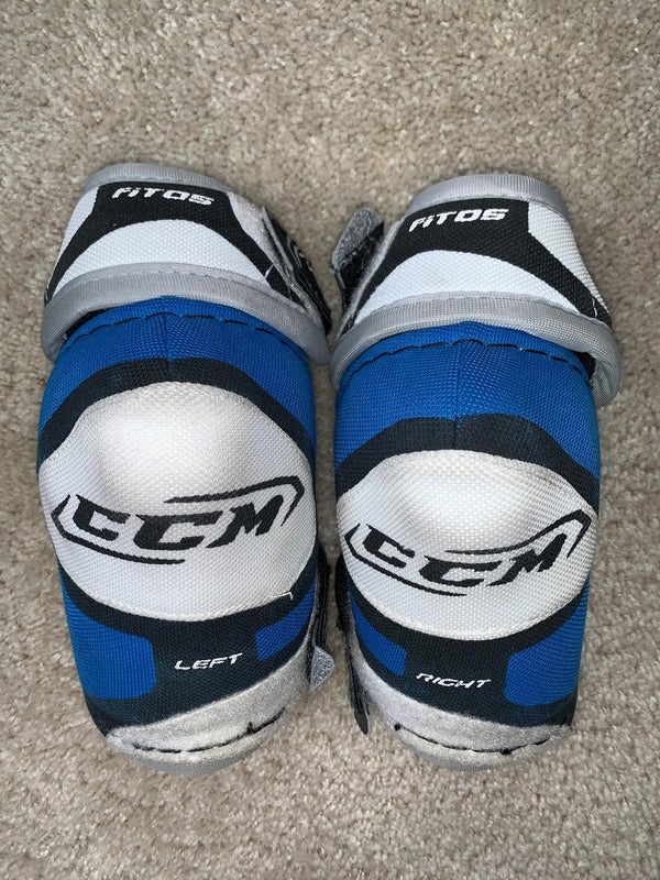 Junior Med elbow pads. Approx. 4'6"-4'10" height. This is a very good, protective elbow pad. Taken out of the bag every night, no smell.